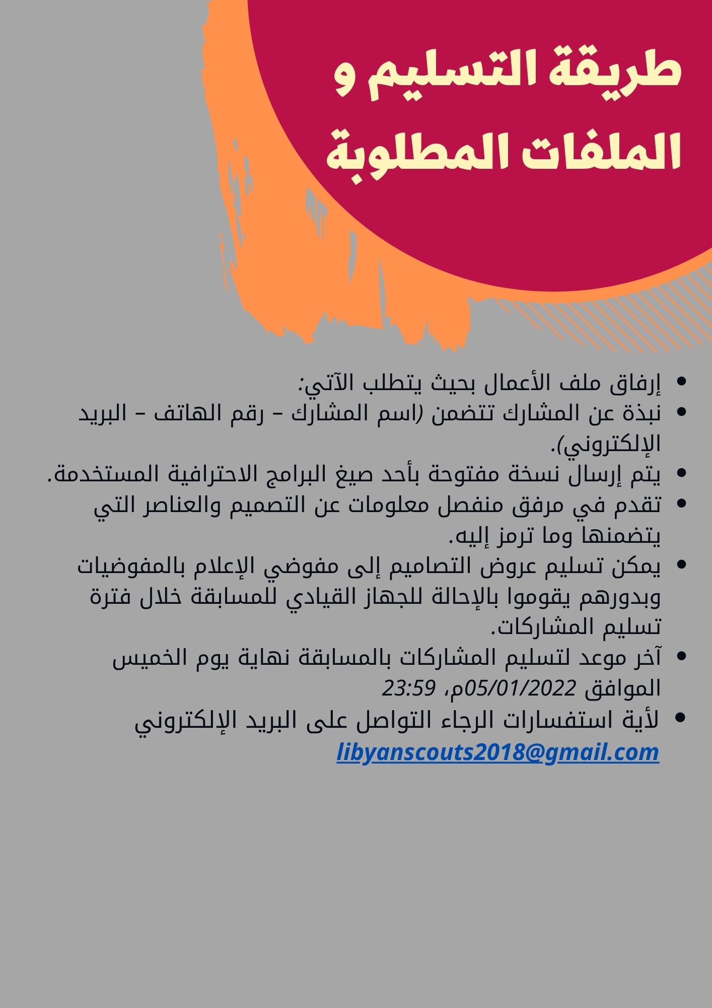 المرحلة الأولى: رفع التصاميم المشاركة على البريد الإلكتروني للحركة العامة للكشافة والمرشدات / ليبيا.