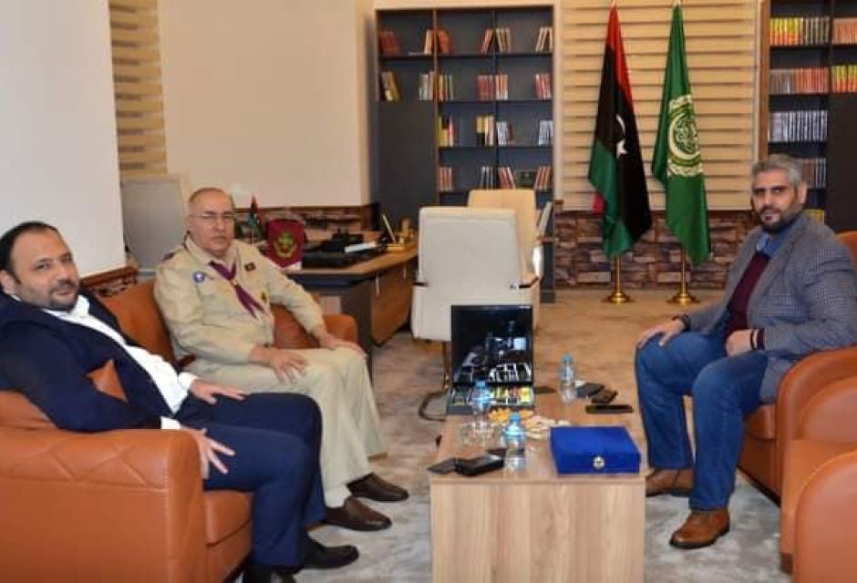 القائد العام للحركة العامة للكشافة و المرشدات رفقة وزير الشباب السيد “فتح الله الزني يزور اليوم السبت الموافق 05 مارس 2022 المندوبية الليبية بجامعة الدول العربية بالقاهرة ويلتقي السفير عبد المطلب ثابت مندوب ليبيا بجامعة الدول العربية لتدعيم حضور الحركة الشبابية الوطنية بمؤسسات العمل العربي المشترك في مجال الشباب وتعزيز المشاركة الليبية في برامج وأنشطة وآليات العمل العربي وتأتي هذه الزيارة تزامنا مع الاجتماع العربي لرؤساء الجمعيات الوطنية للكشافة بالمنظمة الكشفية العربية الذي يقام بمقر المنظمة الكشفية العربية بالقاهرة التابعة لمجلس وزراء الشباب و الرياضة العرب