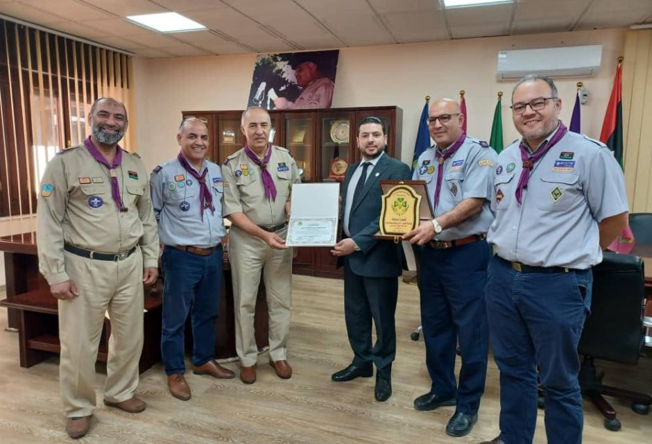 وتأتي زيارة الاستاذ مرعي الدرسي بدعوة كريمة من القائد العام تكريما لهذه الشخصية التي تميزت خلال السنوات الماضية وحققت الكثير من الانجازات على الصعيد المحلي والدولي حيث تم تكريمه بدرع وشهادة تقدير . هذا وحضر اللقاء المفوض التنفيذي وامين الشؤون المالية والمفوض الدولي ومفوض عام مفوضية الجفرة ومفوض عام مفوضية طرابلس وعن الهلال الاحمر الاستاذ عدي الريشي مسؤول مكتب الشباب والعمل التطوعي