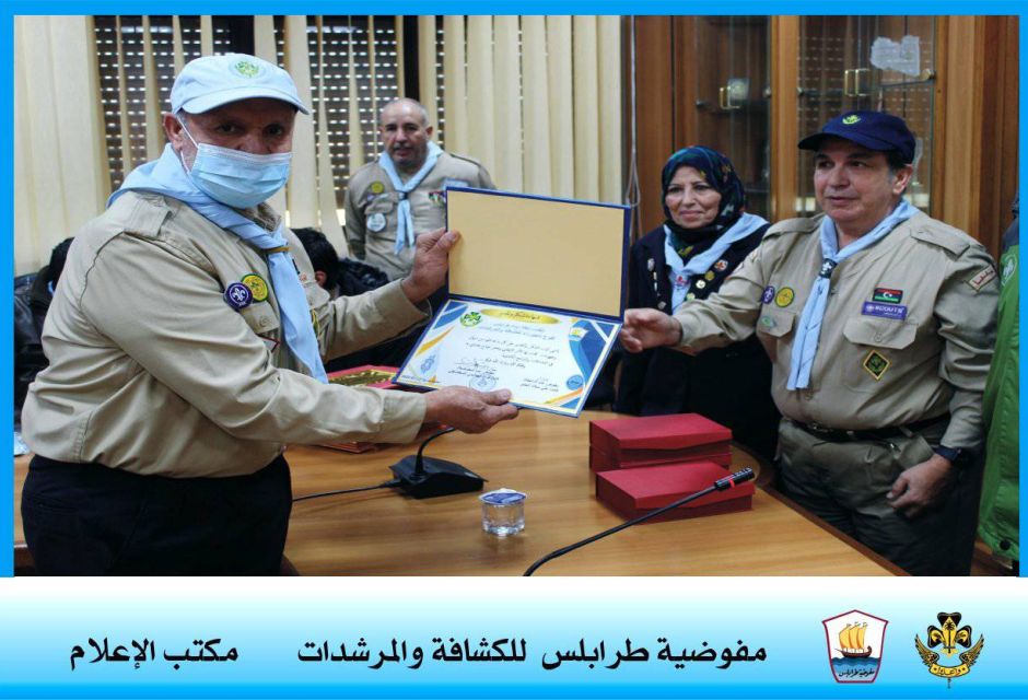 أقيم صباح اليوم السبت الموافق 2022/1/8م بصالة الاجتماعات بهيئة القيادة العامة ، حفل تقييم رحلة رواد مفوضية طرابلس للكشافة والمرشدات إلي مدينة غدامس ، في الفترة الماضية بداء الحفل بتلاوة آيات من الذكر الحكيم من تم النشيد الوطني حيث ألقي القائد سالم الشريف قائد الرحلة كلمة بالمناسبة ، حيث شكر كل من ساهم في إنجاح الرحلة كما أعطيت الكلمة الي مفوضية طرابلس التي ألقاها القائد بشير بن رمضان نيابة عن مفوض العام لمفوضية طرابلس التي أشاد بالدور الكبير الذي تقوم به حلقة الرواد بالمفوضية ، وعلي هامش الحفل تم تكريم الجهاز القيادي للرحلة بعد ذلك تم عرض شريط مرئي عن رحلة الرواد لمدينة غدامس الذي أعده القادم مصطفي حوده وفي نهاية الحفل تم تناول الشاي والمرطبات .