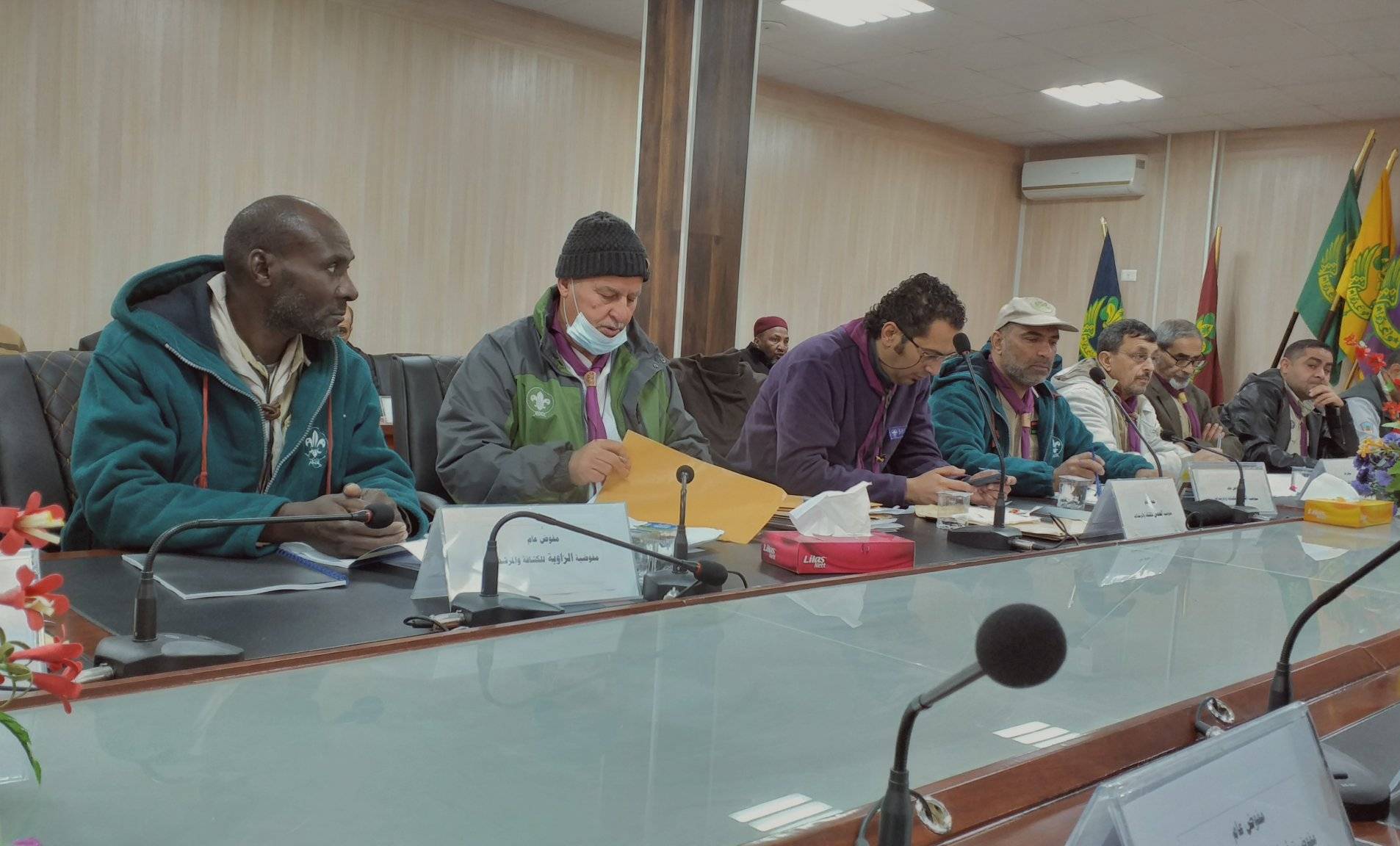 هيئة القيادة العامة بالحركة العامة للكشافة و المرشدات – ليبيا تعقد إجتماعها الأول لسنة 2022 تحت ظلال غابة الصنوبر جوددائم ( المركز الدولي لتدريب الكشافة و المرشدات ) يومي الخميس و الجمعة الموافق 13-14 يناير 2022 عقدت هيئة القيادة العامة بالحركة العامة للكشافة و المرشدات إجتماعها الأول لسنة 2022 وذلك بحضور جميع أعضاء الهيئة من المفوضون العامون بالمفوضيات الستة و العشرون و أعضاء المكتب التنفيذي ومفوضي الحلقات و القطاعات .حيث إفتتح اللقاء بالنشيد الوطني و إستهل بتلاوة ايات من الذكر الحكيم ومن تم الترحم وقراءة الفاتحة على روح القائد بشير مبارك و القائد عطية ابو لايطة ثم قام القائد العام الدكتور فرج بن سليم بافتتاح الأجتماع مرحباً بالحضور متمنيا لهم إقامة طيبة ومحفزاً لهم بالخروج بتوصيات تخدم الحركة و تساهم في تعزيز برامجها وأنشطتها خلال العام القادم كما عرض علي الجميع نقاط الأجتماع و التى تضمنت إعتماد المحضر السابق و بيانات القائد العام و عرض الخطة السنوية و تقارير القطاعات والوضع المالي و الأستعدادات لعقد المؤتمر العام .حيث تم تناول جميع النقاط بشكل مستفيض من قبل أعضاء هيئة القيادة العامة وأعطي الكلمات لكل المشاركين و الأجابة عن التسؤولات و عرض الأقتراحات و مناقشتها وأبداء الملاحظات و الأتفاق عليها و وتشكيل لجان لمتابعة جميع ماتم الأتفاق عليه والبدء فعليا في الإجراءات التنفيذية .وانتهاء اللقاء مساء يوم الجمعة