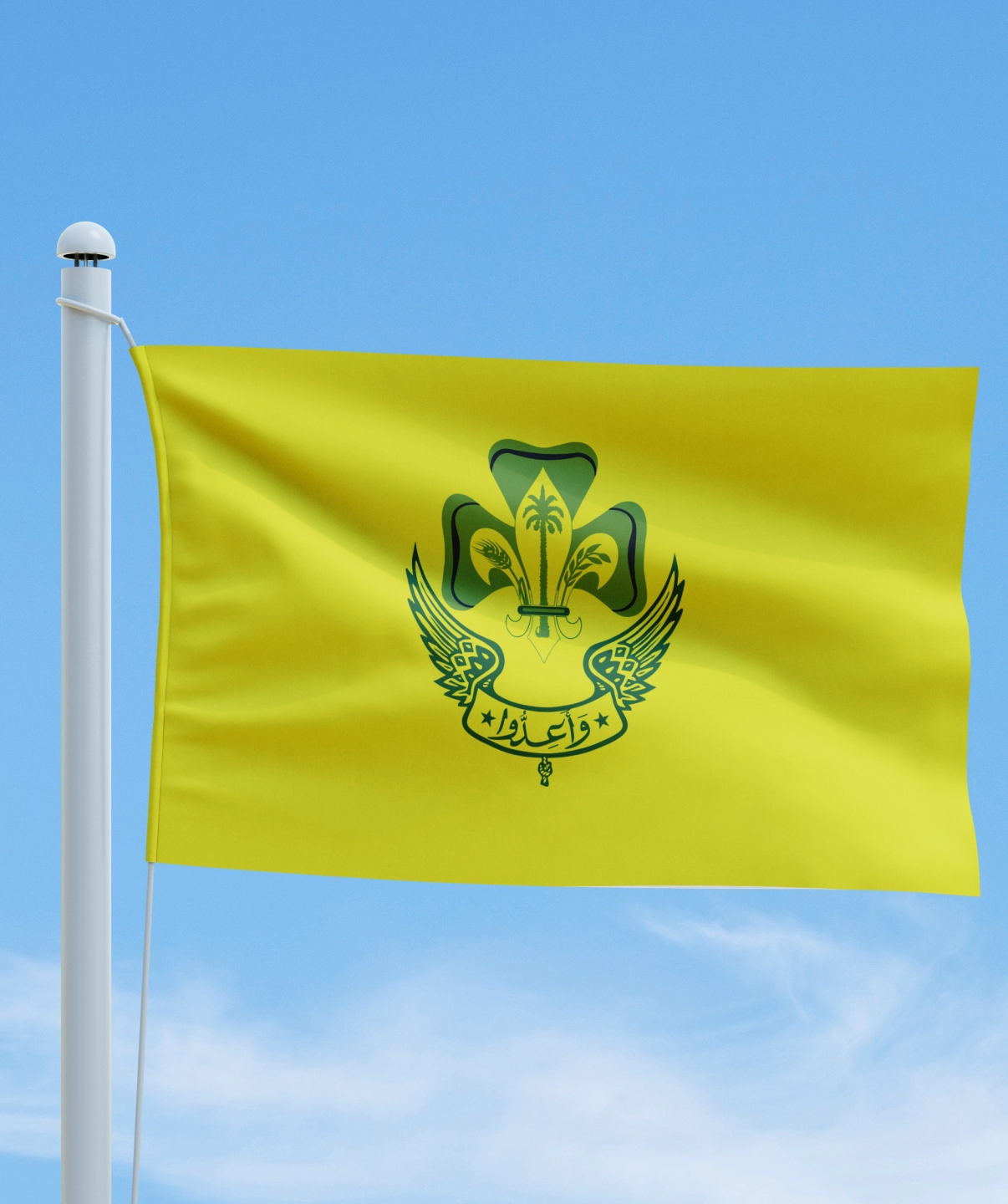 - ( وأعدوا ) : وهي شعار الحركة العامة للكشافة والمرشدات لعظمة دلالاتها من الآية الكريمة : بسم الله الرحمن الرحيم ( وأعدوا لهم ما استطعتم من قوةٍ ومن رباط الخيل ترهبون به عدو الله وعدوكم وآخرين من دونهم لا تعلمونهم الله يعلمهم وما تنفقوا من شيء في سبيل الله يوف إليكم وأنتم لا تظلمون ) صدق الله العظيم .وقد تم اختيار هذا الشعار من قبل مؤسس الحركة المرحوم علي خليفة الزائدي وهي دليل الاستعداد الدائم لأداء الواجبات نحو الله والوطن والشعب .كلمة وأعدوا تذكر الكشاف والمرشدة بأن يكونوا على استعداد كامل وتهيؤ تام من الناحية العقلية، والبدنية ، والروحية استجابة لأمر تعالى ( وأعدوا لهم ما استطعتم من قوة ومن رباط الخيل ).